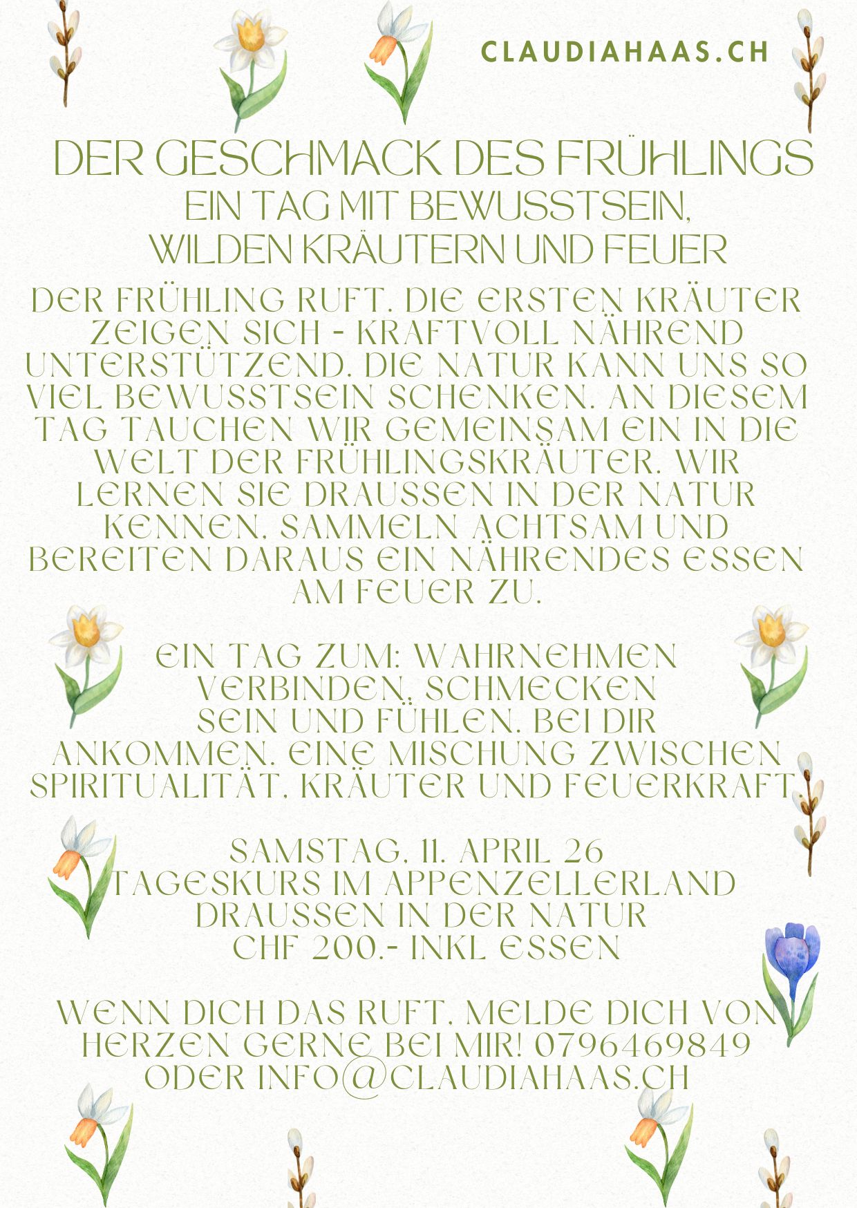 | Geschmack des Frühling - Kräuter und Spiritualität | Tagessseminar outdoor | Samstag, 11. April 2026 |
