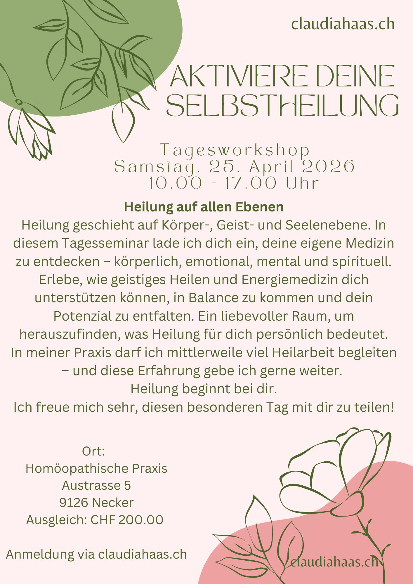 | Selbstheilung aktivieren | Tagesseminar | Samstag, 25. April 2026 |