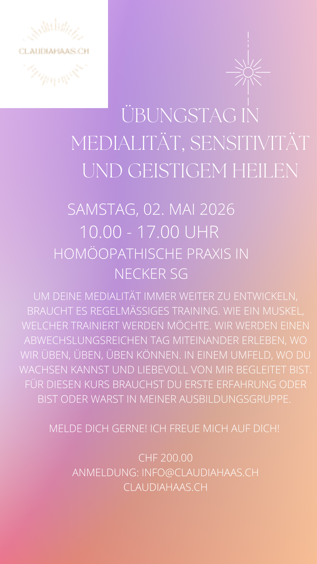 | Übungstag Medialität | Tagesworkshop | Samstag, 2. Mai 2026 |